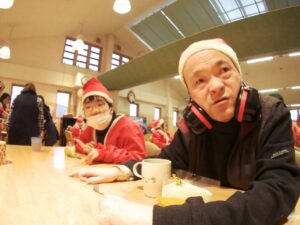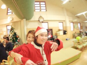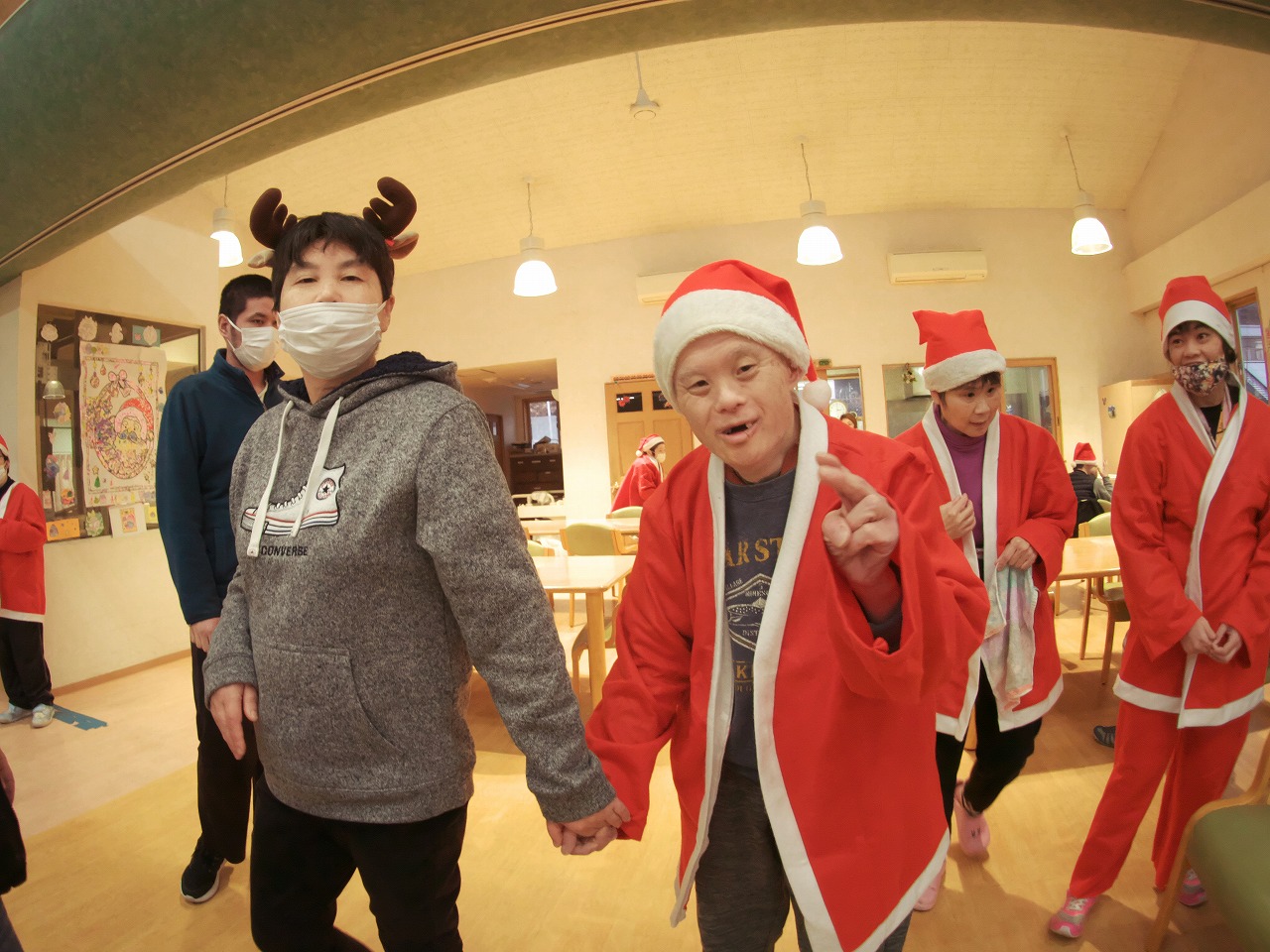 はしゃぐ仲間Mさんと職員H。いい表情です。