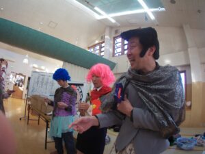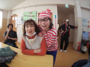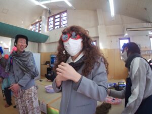 ぐるぐるメガネの仲間Kさんもなかなかの完成度。お母さんに、似てるって??
