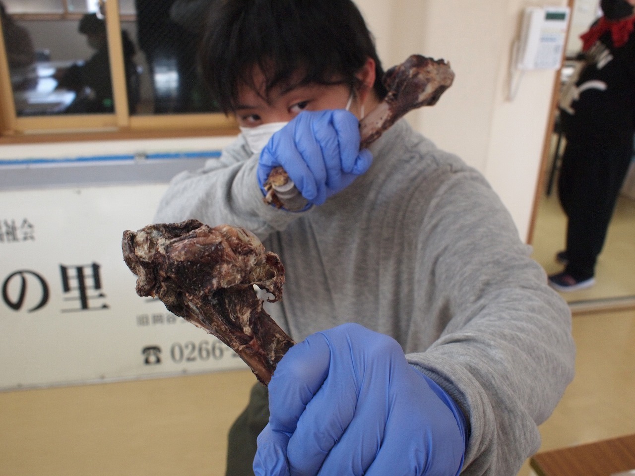 つめるのは、これ。鹿の大腿骨らしいです。すごいですね。