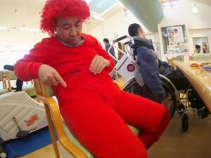 それって、赤い股引。こんなのどこに売っているの? 準備する介護職員の熱量?はすごいわ。
